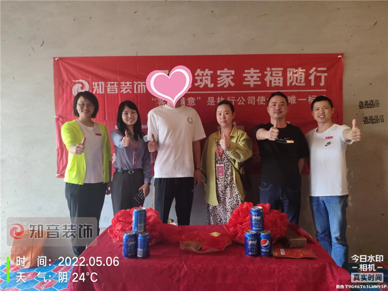 經(jīng)過原屋儉收,電梯公共過道保護(hù),鏟除墻皮,黃墻綠地保護(hù),全房放線定位,全房放樣安全后知音裝飾為每戶業(yè)主舉行隆重的開工儀式以表慶賀