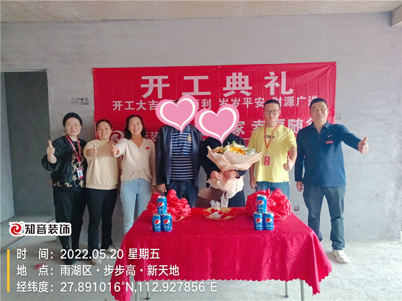 經(jīng)過(guò)原屋儉收,電梯公共過(guò)道保護(hù),鏟除墻皮,黃墻綠地保護(hù),全房放線定位,全房放樣安全后知音裝飾為每戶(hù)業(yè)主舉行隆重的開(kāi)工儀式以表慶賀