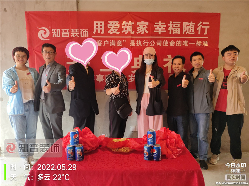 經(jīng)過原屋儉收,電梯公共過道保護,鏟除墻皮,黃墻綠地保護,全房放線定位,全房放樣安全后知音裝飾為每戶業(yè)主舉行隆重的開工儀式以表慶賀