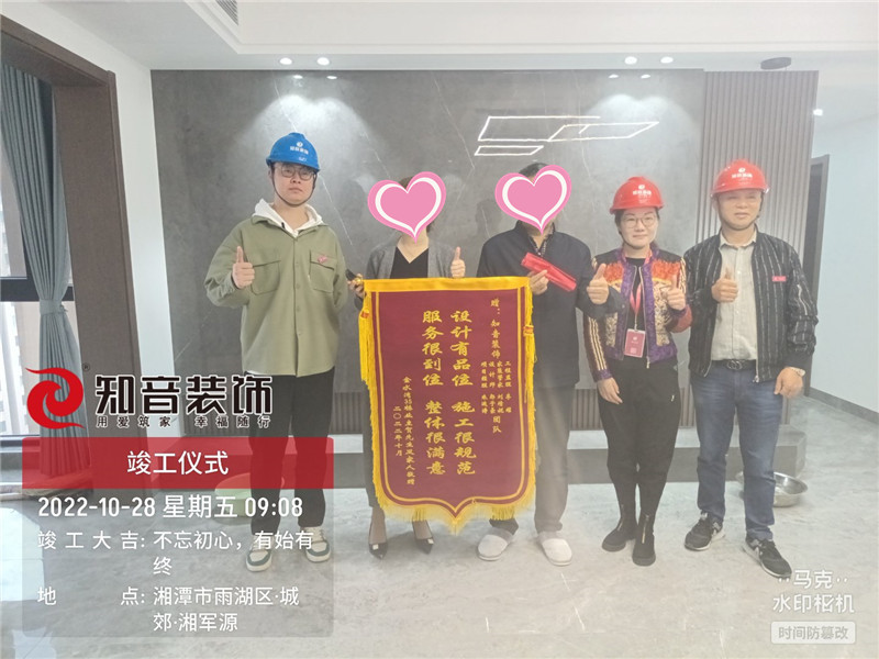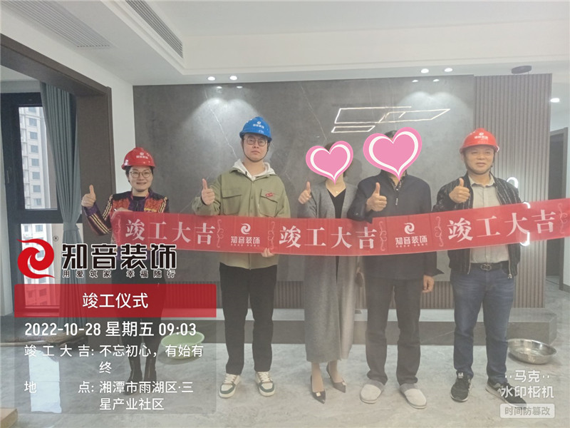 經(jīng)過(guò)原屋儉收,電梯公共過(guò)道保護(hù),鏟除墻皮,黃墻綠地保護(hù),全房放線定位,全房放樣安全后知音裝飾為每戶業(yè)主舉行隆重的開工儀式以表慶賀