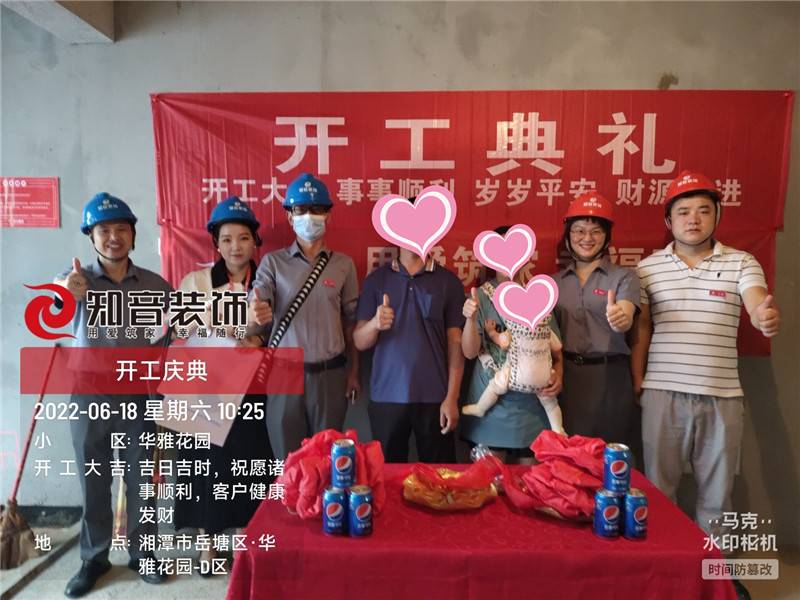 經過原屋儉收,電梯公共過道保護,鏟除墻皮,黃墻綠地保護,全房放線定位,全房放樣安全后知音裝飾為每戶業(yè)主舉行隆重的開工儀式以表慶賀