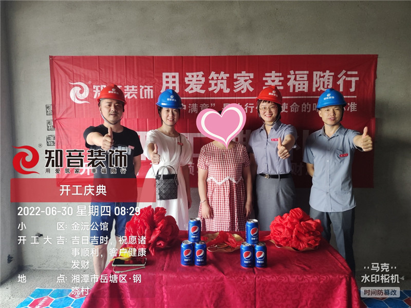 經(jīng)過原屋儉收,電梯公共過道保護(hù),鏟除墻皮,黃墻綠地保護(hù),全房放線定位,全房放樣安全后知音裝飾為每戶業(yè)主舉行隆重的開工儀式以表慶賀