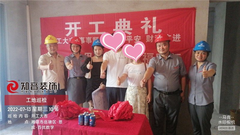 經(jīng)過原屋儉收,電梯公共過道保護,鏟除墻皮,黃墻綠地保護,全房放線定位,全房放樣安全后知音裝飾為每戶業(yè)主舉行隆重的開工儀式以表慶賀