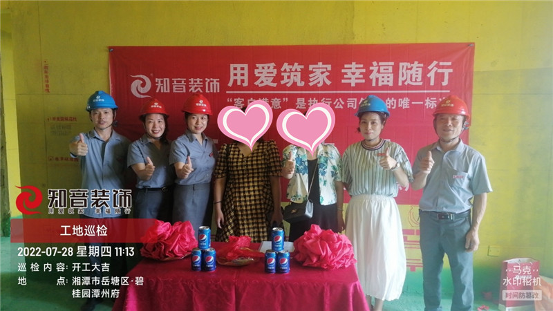 經(jīng)過原屋儉收,電梯公共過道保護(hù),鏟除墻皮,黃墻綠地保護(hù),全房放線定位,全房放樣安全后知音裝飾為每戶業(yè)主舉行隆重的開工儀式以表慶賀