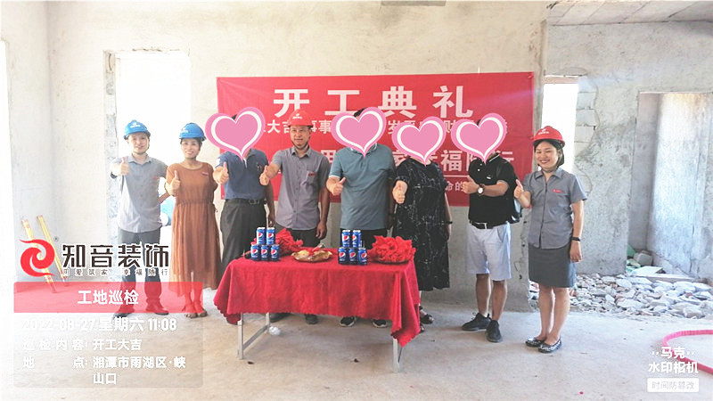 經(jīng)過原屋儉收,電梯公共過道保護(hù),鏟除墻皮,黃墻綠地保護(hù),全房放線定位,全房放樣安全后知音裝飾為每戶業(yè)主舉行隆重的開工儀式以表慶賀