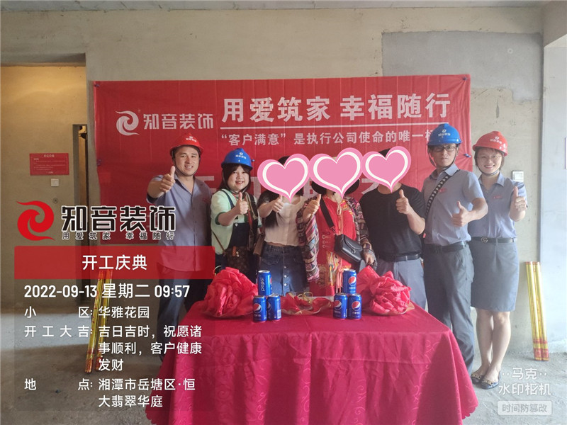 經(jīng)過原屋儉收,電梯公共過道保護(hù),鏟除墻皮,黃墻綠地保護(hù),全房放線定位,全房放樣安全后知音裝飾為每戶業(yè)主舉行隆重的開工儀式以表慶賀