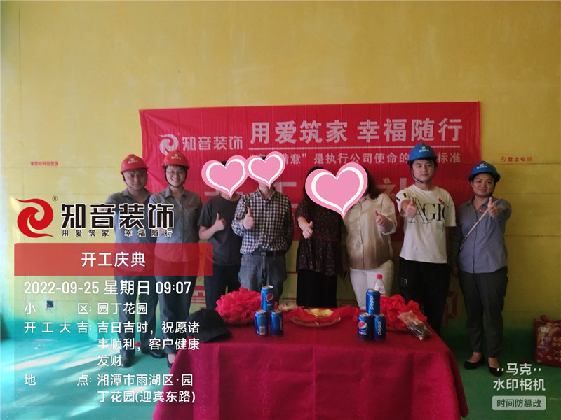 經(jīng)過(guò)原屋儉收,電梯公共過(guò)道保護(hù),鏟除墻皮,黃墻綠地保護(hù),全房放線(xiàn)定位,全房放樣安全后知音裝飾為每戶(hù)業(yè)主舉行隆重的開(kāi)工儀式以表慶賀