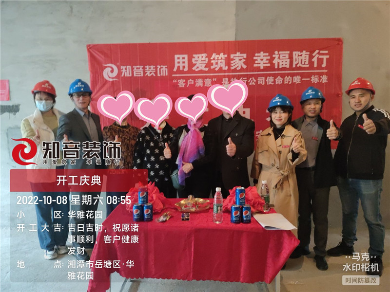 經(jīng)過原屋儉收,電梯公共過道保護(hù),鏟除墻皮,黃墻綠地保護(hù),全房放線定位,全房放樣安全后知音裝飾為每戶業(yè)主舉行隆重的開工儀式以表慶賀