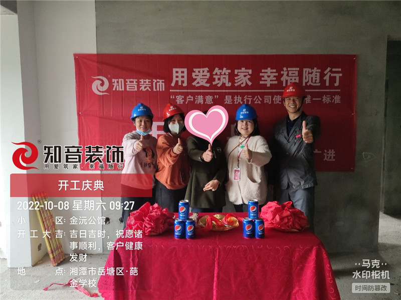 經(jīng)過原屋儉收,電梯公共過道保護(hù),鏟除墻皮,黃墻綠地保護(hù),全房放線定位,全房放樣安全后知音裝飾為每戶業(yè)主舉行隆重的開工儀式以表慶賀
