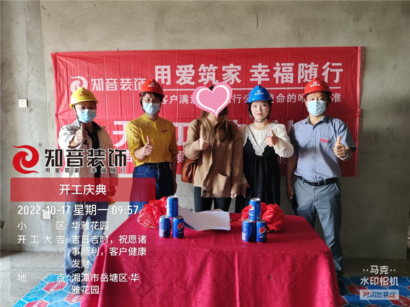經(jīng)過原屋儉收,電梯公共過道保護(hù),鏟除墻皮,黃墻綠地保護(hù),全房放線定位,全房放樣安全后知音裝飾為每戶業(yè)主舉行隆重的開工儀式以表慶賀