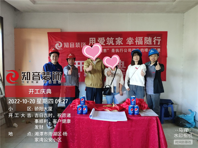 經(jīng)過原屋儉收,電梯公共過道保護,鏟除墻皮,黃墻綠地保護,全房放線定位,全房放樣安全后知音裝飾為每戶業(yè)主舉行隆重的開工儀式以表慶賀