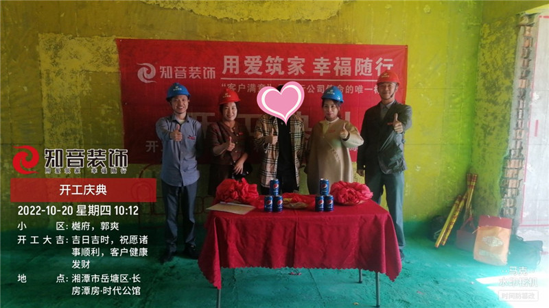 經(jīng)過原屋儉收,電梯公共過道保護,鏟除墻皮,黃墻綠地保護,全房放線定位,全房放樣安全后知音裝飾為每戶業(yè)主舉行隆重的開工儀式以表慶賀