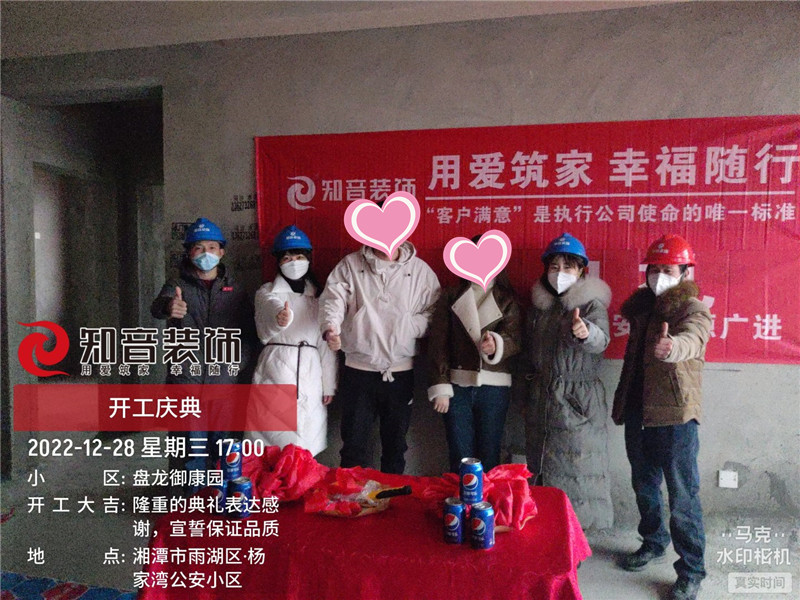 經(jīng)過原屋儉收,電梯公共過道保護(hù),鏟除墻皮,黃墻綠地保護(hù),全房放線定位,全房放樣安全后知音裝飾為每戶業(yè)主舉行隆重的開工儀式以表慶賀