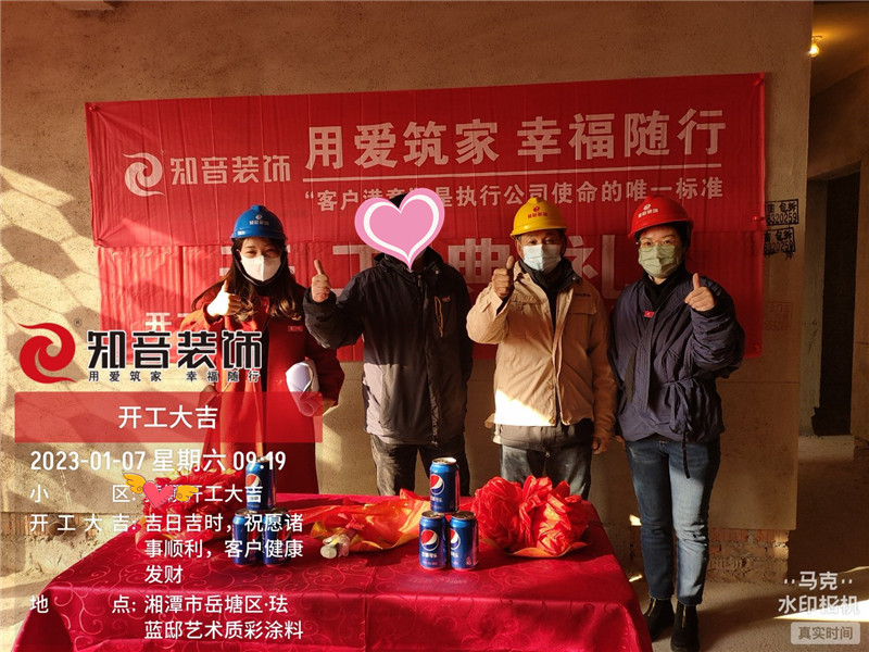 經(jīng)過原屋儉收,電梯公共過道保護,鏟除墻皮,黃墻綠地保護,全房放線定位,全房放樣安全后知音裝飾為每戶業(yè)主舉行隆重的開工儀式以表慶賀