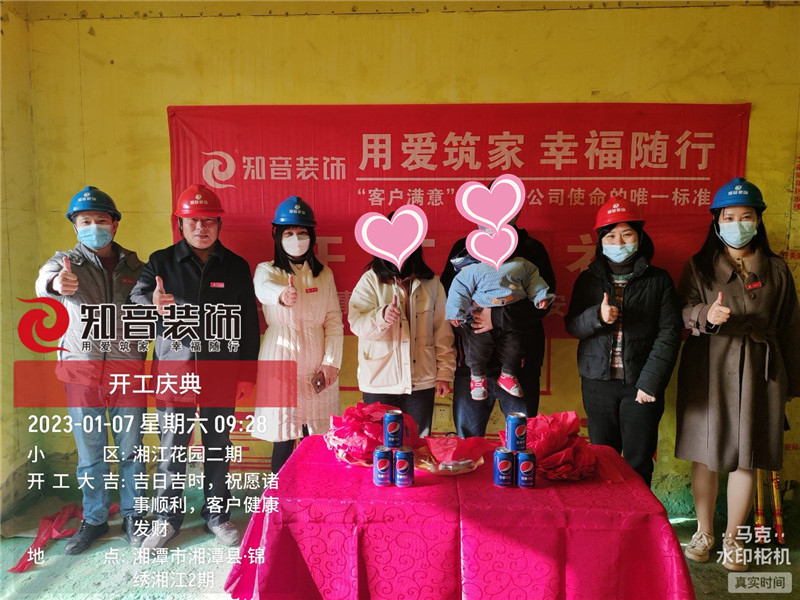 經(jīng)過(guò)原屋儉收,電梯公共過(guò)道保護(hù),鏟除墻皮,黃墻綠地保護(hù),全房放線定位,全房放樣安全后知音裝飾為每戶業(yè)主舉行隆重的開工儀式以表慶賀