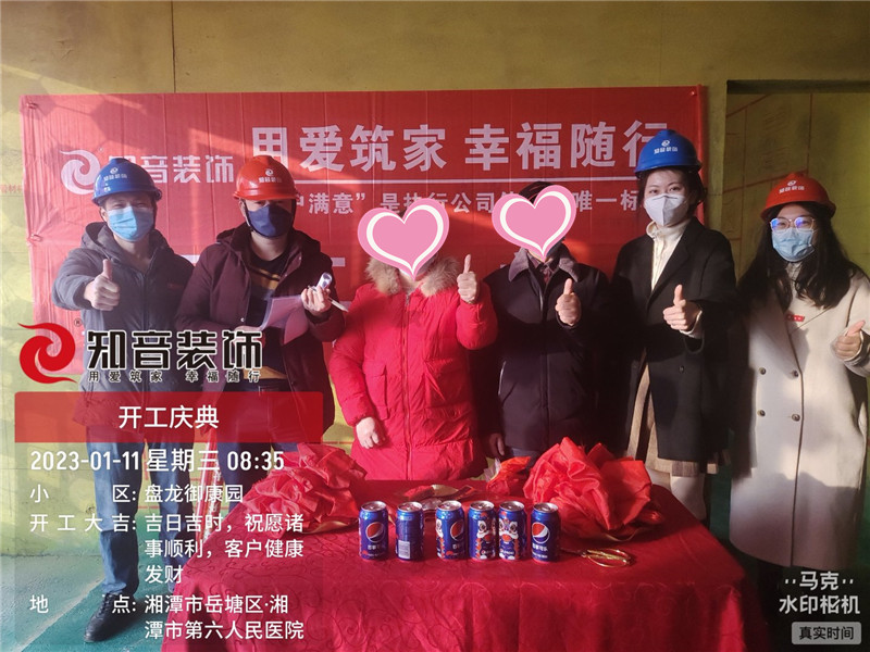 經(jīng)過原屋儉收,電梯公共過道保護(hù),鏟除墻皮,黃墻綠地保護(hù),全房放線定位,全房放樣安全后知音裝飾為每戶業(yè)主舉行隆重的開工儀式以表慶賀