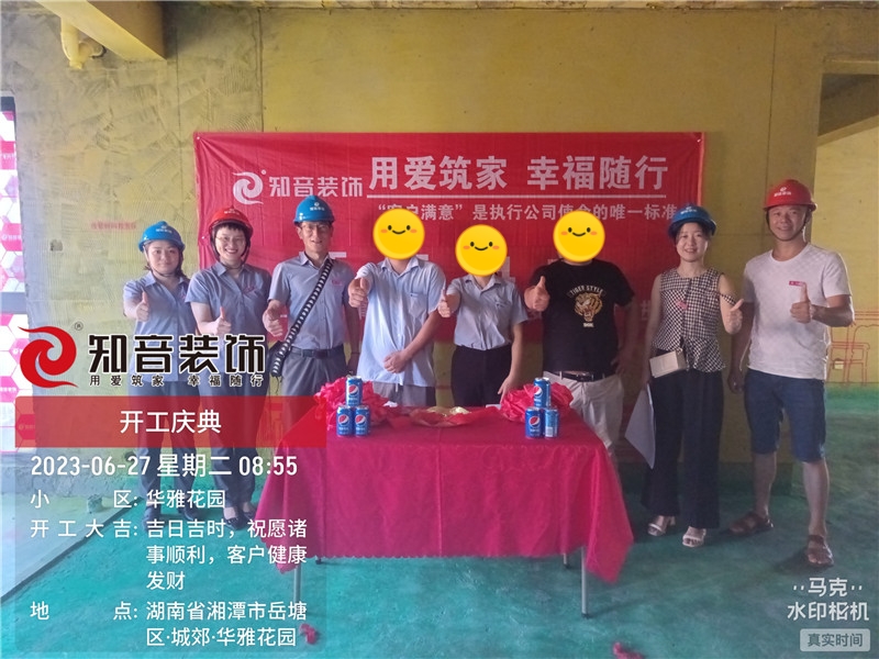 經(jīng)過原屋儉收,電梯公共過道保護(hù),鏟除墻皮,黃墻綠地保護(hù),全房放線定位,全房放樣安全后知音裝飾為每戶業(yè)主舉行隆重的開工儀式以表慶賀