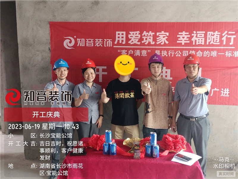 經(jīng)過(guò)原屋儉收,電梯公共過(guò)道保護(hù),鏟除墻皮,黃墻綠地保護(hù),全房放線定位,全房放樣安全后知音裝飾為每戶(hù)業(yè)主舉行隆重的開(kāi)工儀式以表慶賀