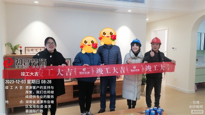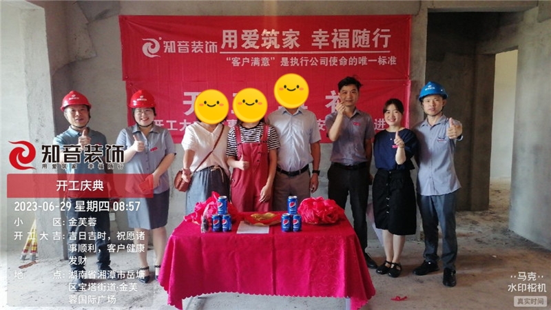 經(jīng)過原屋儉收,電梯公共過道保護(hù),鏟除墻皮,黃墻綠地保護(hù),全房放線定位,全房放樣安全后知音裝飾為每戶業(yè)主舉行隆重的開工儀式以表慶賀