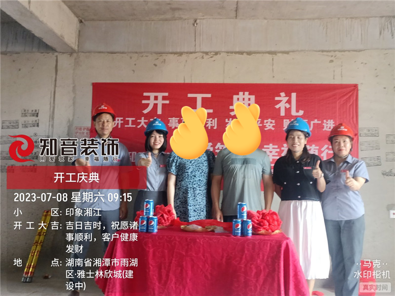經(jīng)過原屋儉收,電梯公共過道保護,鏟除墻皮,黃墻綠地保護,全房放線定位,全房放樣安全后知音裝飾為每戶業(yè)主舉行隆重的開工儀式以表慶賀