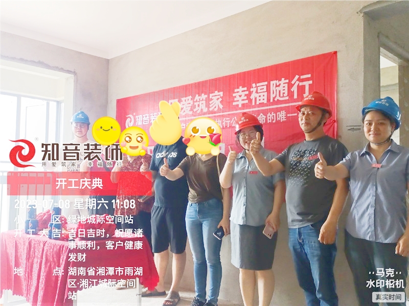 經(jīng)過原屋儉收,電梯公共過道保護(hù),鏟除墻皮,黃墻綠地保護(hù),全房放線定位,全房放樣安全后知音裝飾為每戶業(yè)主舉行隆重的開工儀式以表慶賀