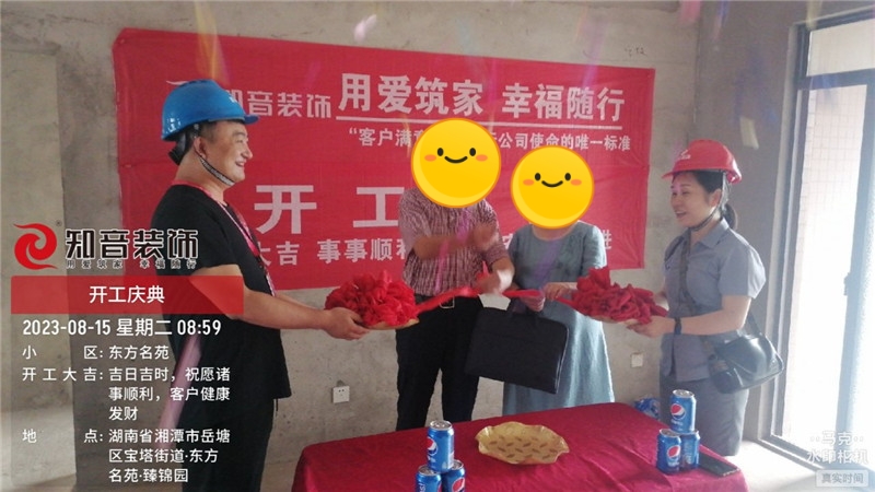 經過原屋儉收,電梯公共過道保護,鏟除墻皮,黃墻綠地保護,全房放線定位,全房放樣安全后知音裝飾為每戶業(yè)主舉行隆重的開工儀式以表慶賀