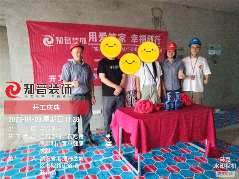 經(jīng)過(guò)原屋儉收,電梯公共過(guò)道保護(hù),鏟除墻皮,黃墻綠地保護(hù),全房放線定位,全房放樣安全后知音裝飾為每戶(hù)業(yè)主舉行隆重的開(kāi)工儀式以表慶賀