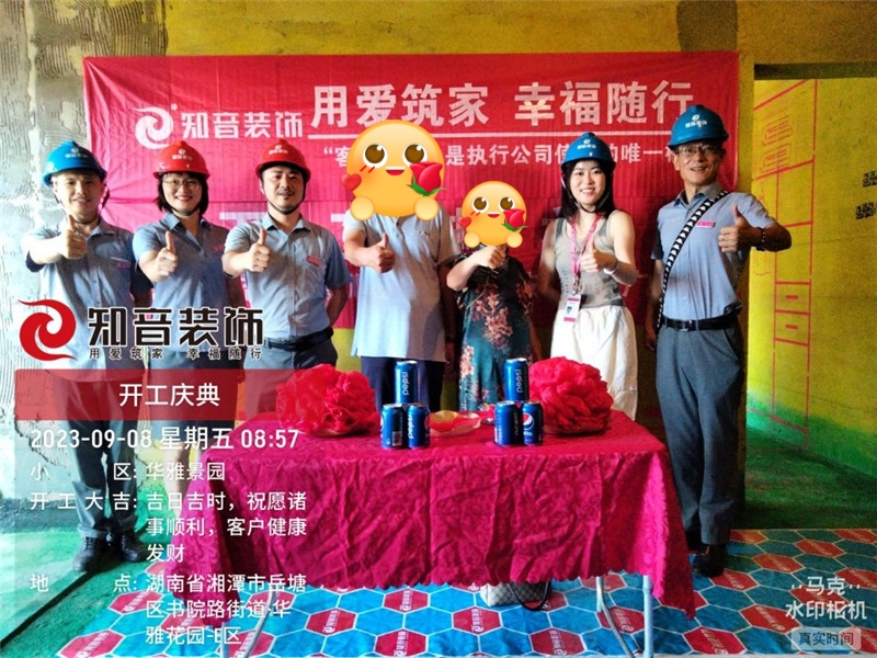 經(jīng)過(guò)原屋儉收,電梯公共過(guò)道保護(hù),鏟除墻皮,黃墻綠地保護(hù),全房放線定位,全房放樣安全后知音裝飾為每戶(hù)業(yè)主舉行隆重的開(kāi)工儀式以表慶賀