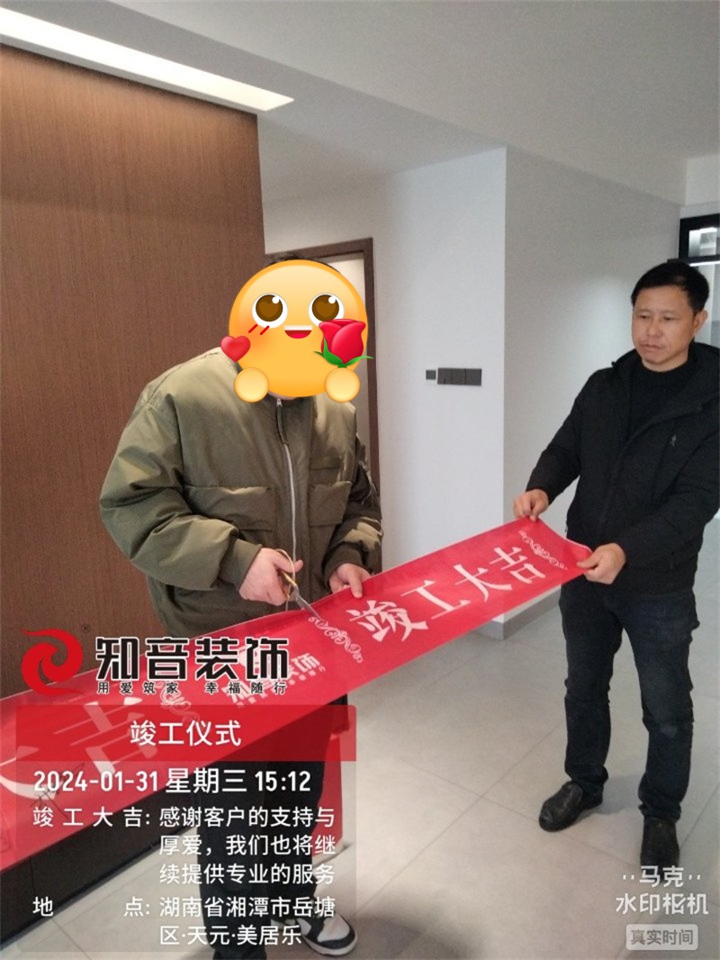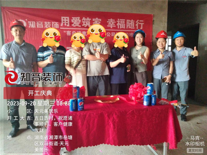 經(jīng)過原屋儉收,電梯公共過道保護(hù),鏟除墻皮,黃墻綠地保護(hù),全房放線定位,全房放樣安全后知音裝飾為每戶業(yè)主舉行隆重的開工儀式以表慶賀