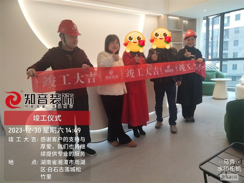 經(jīng)過原屋儉收,電梯公共過道保護(hù),鏟除墻皮,黃墻綠地保護(hù),全房放線定位,全房放樣安全后知音裝飾為每戶業(yè)主舉行隆重的開工儀式以表慶賀