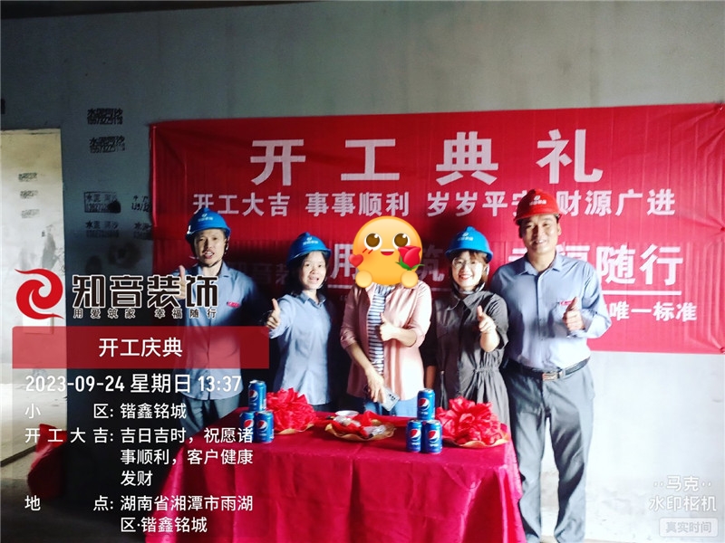 經(jīng)過原屋儉收,電梯公共過道保護,鏟除墻皮,黃墻綠地保護,全房放線定位,全房放樣安全后知音裝飾為每戶業(yè)主舉行隆重的開工儀式以表慶賀