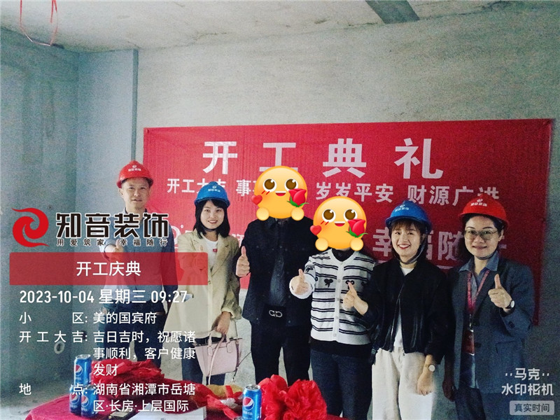 經(jīng)過原屋儉收,電梯公共過道保護(hù),鏟除墻皮,全房放線定位后知音裝飾為每戶業(yè)主舉行隆重的開工儀式以表慶賀