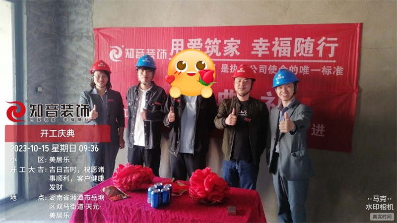 經(jīng)過(guò)原屋儉收,電梯公共過(guò)道保護(hù),鏟除墻皮,全房放線定位后知音裝飾為每戶業(yè)主舉行隆重的開(kāi)工儀式以表慶賀