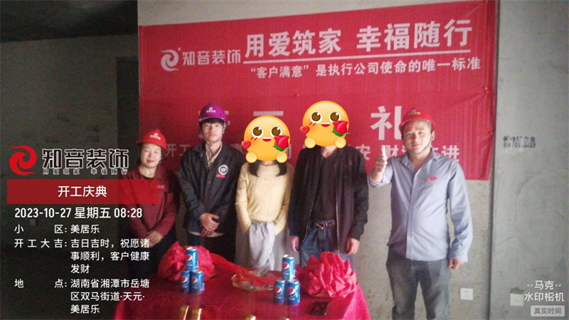 經(jīng)過原屋儉收,電梯公共過道保護(hù),鏟除墻皮,全房放線定位后知音裝飾為每戶業(yè)主舉行隆重的開工儀式以表慶賀