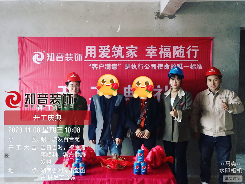 經(jīng)過(guò)原屋儉收,電梯公共過(guò)道保護(hù),鏟除墻皮,全房放線定位后知音裝飾為每戶業(yè)主舉行隆重的開(kāi)工儀式以表慶賀