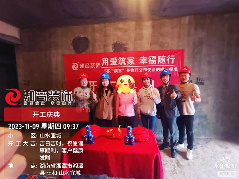 經(jīng)過原屋儉收,電梯公共過道保護(hù),鏟除墻皮,全房放線定位后知音裝飾為每戶業(yè)主舉行隆重的開工儀式以表慶賀
