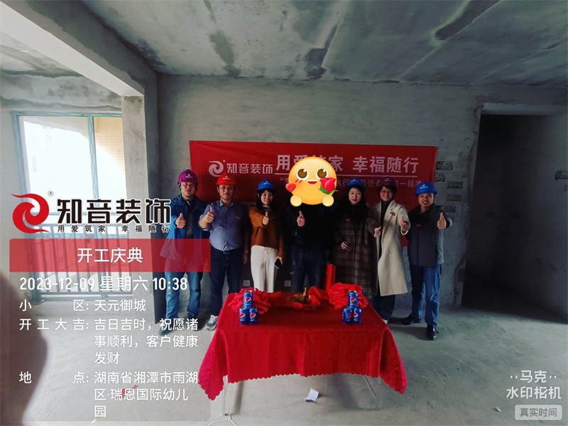 經(jīng)過原屋儉收,電梯公共過道保護(hù),鏟除墻皮,全房放線定位后知音裝飾為每戶業(yè)主舉行隆重的開工儀式以表慶賀