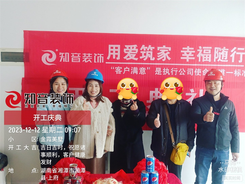 經(jīng)過原屋儉收,電梯公共過道保護,鏟除墻皮,全房放線定位后知音裝飾為每戶業(yè)主舉行隆重的開工儀式以表慶賀