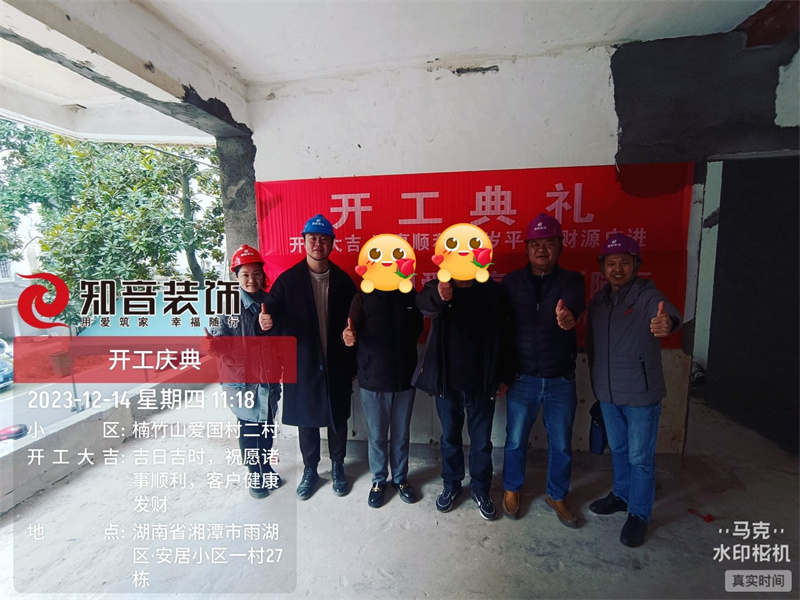 經(jīng)過原屋儉收,電梯公共過道保護(hù),鏟除墻皮,全房放線定位后知音裝飾為每戶業(yè)主舉行隆重的開工儀式以表慶賀