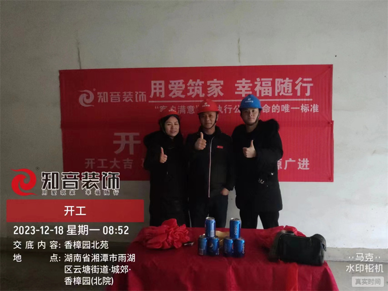 經(jīng)過原屋儉收,電梯公共過道保護(hù),鏟除墻皮,全房放線定位后知音裝飾為每戶業(yè)主舉行隆重的開工儀式以表慶賀
