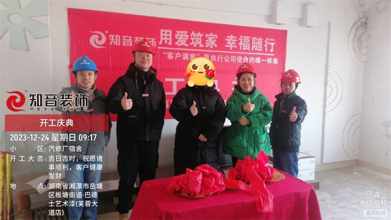 經過原屋儉收,電梯公共過道保護,鏟除墻皮,全房放線定位后知音裝飾為每戶業(yè)主舉行隆重的開工儀式以表慶賀