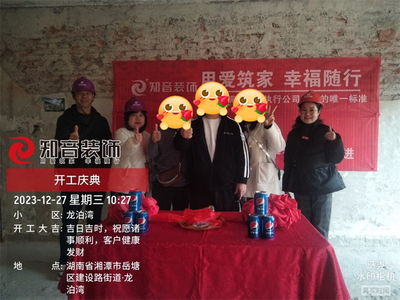 經(jīng)過(guò)原屋儉收,電梯公共過(guò)道保護(hù),鏟除墻皮,全房放線定位后知音裝飾為每戶業(yè)主舉行隆重的開工儀式以表慶賀
