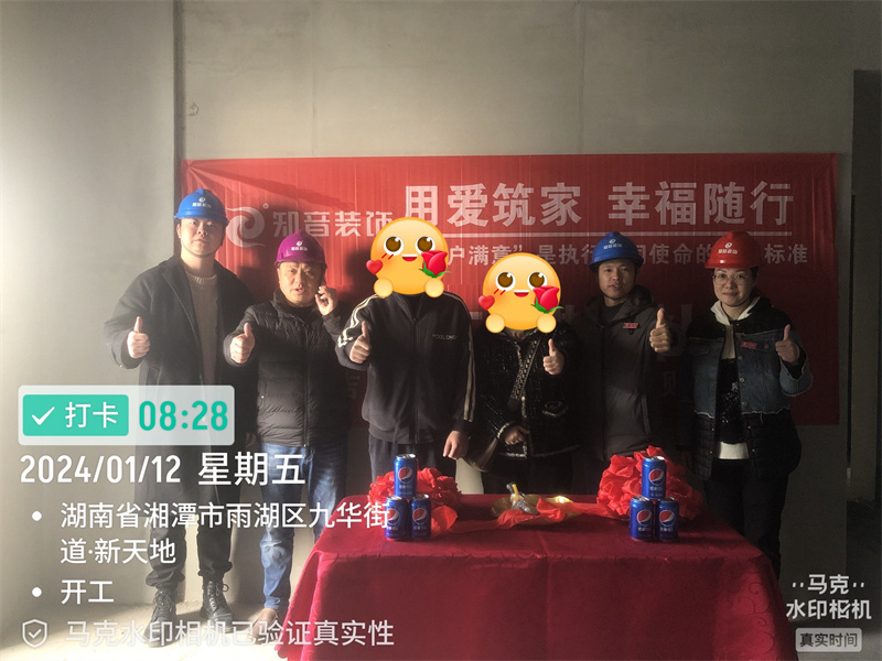 經(jīng)過(guò)原屋儉收,電梯公共過(guò)道保護(hù),鏟除墻皮,全房放線定位后知音裝飾為每戶業(yè)主舉行隆重的開(kāi)工儀式以表慶賀