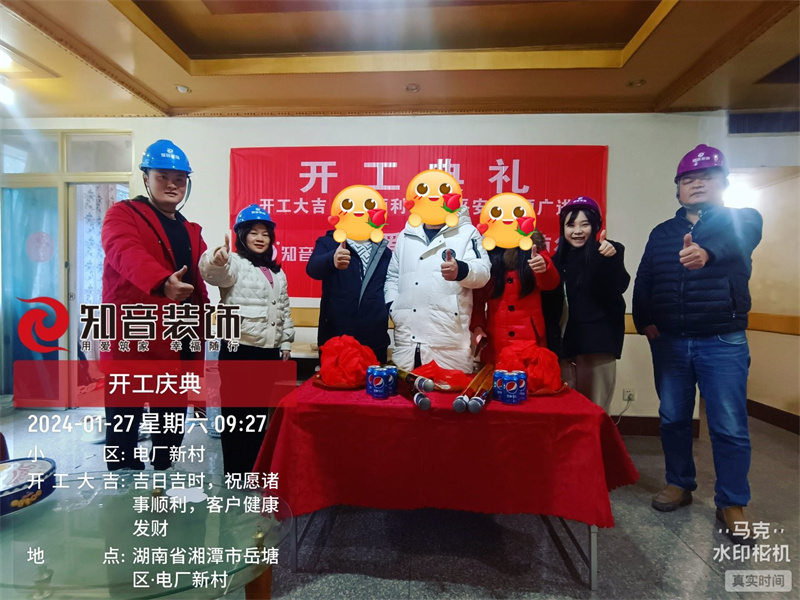 經(jīng)過(guò)原屋儉收,電梯公共過(guò)道保護(hù),鏟除墻皮,全房放線定位后知音裝飾為每戶業(yè)主舉行隆重的開工儀式以表慶賀