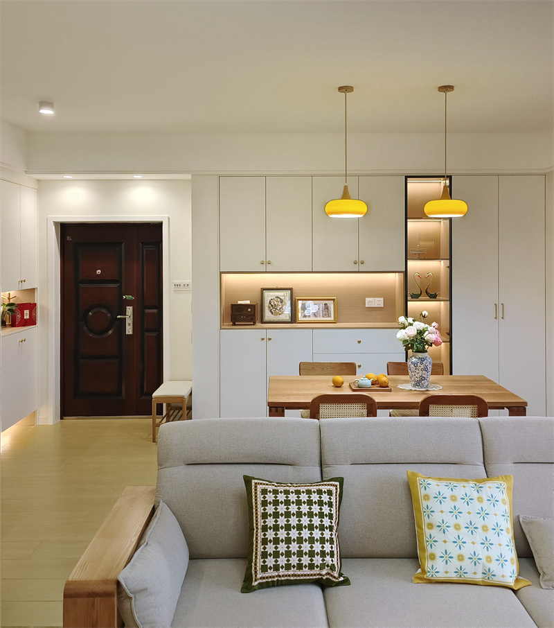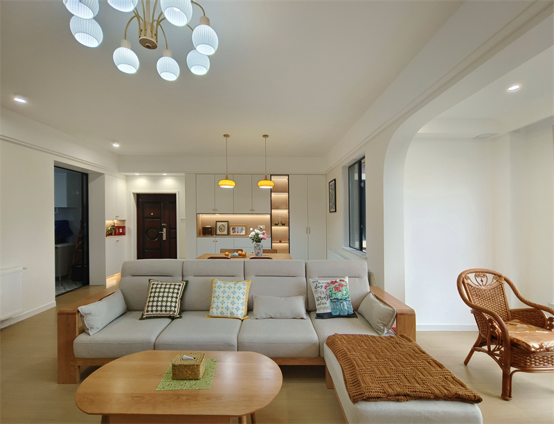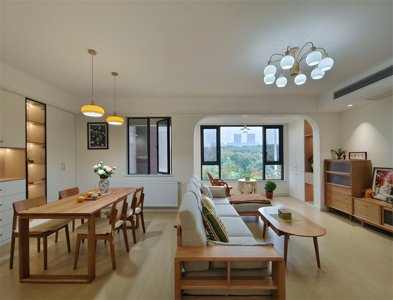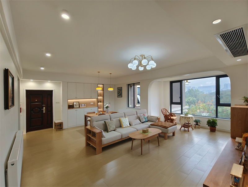本案是金芙蓉國際一套136平的溫馨原木風(fēng)實(shí)景效果,由湘潭家裝設(shè)計(jì)師李姣設(shè)計(jì):