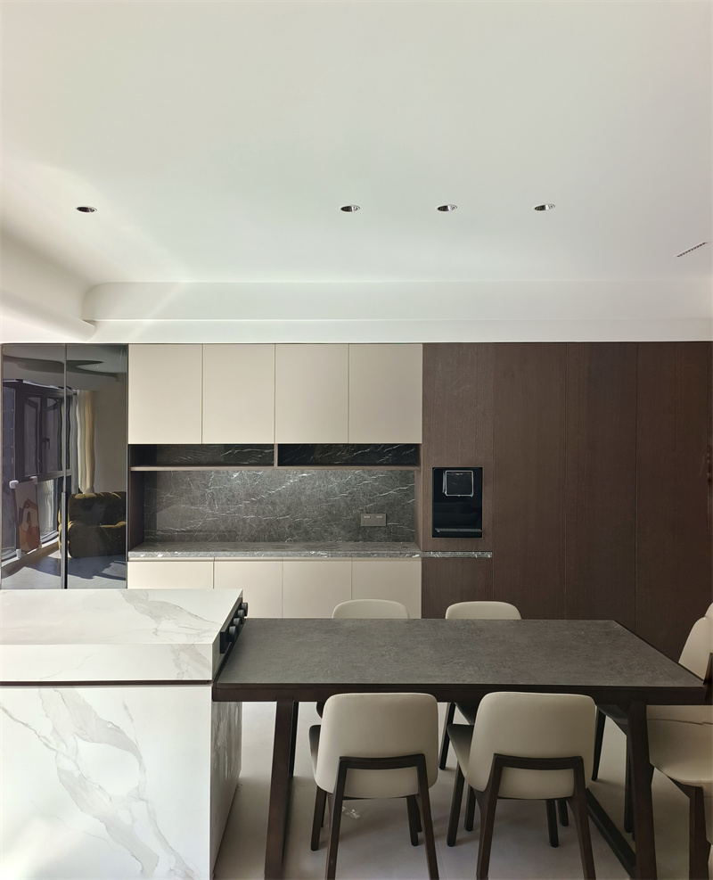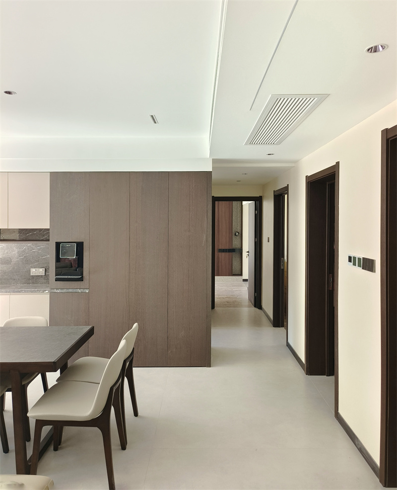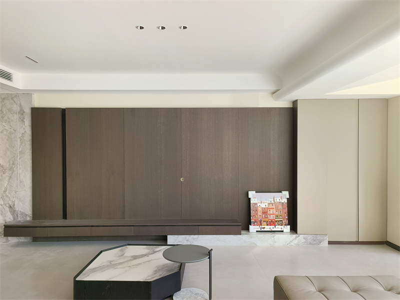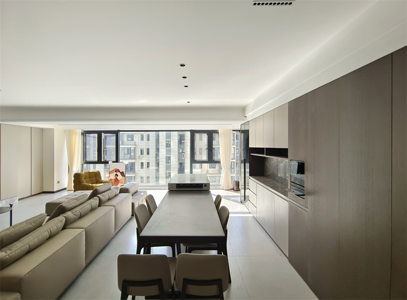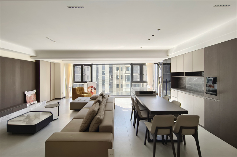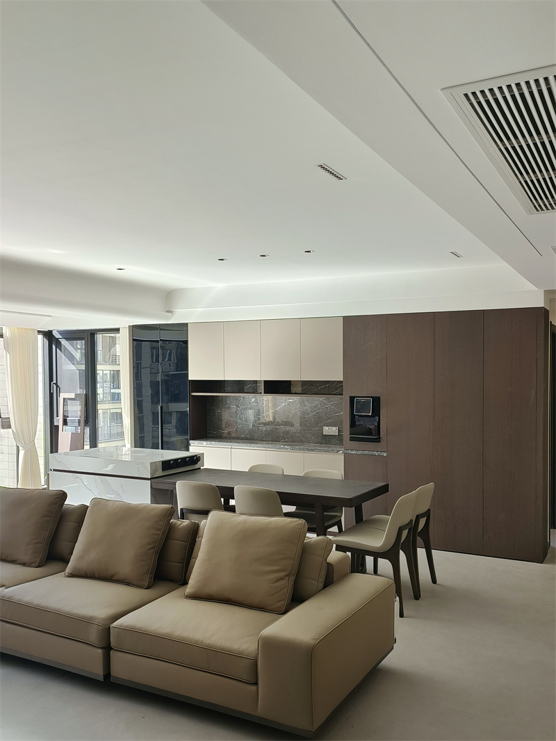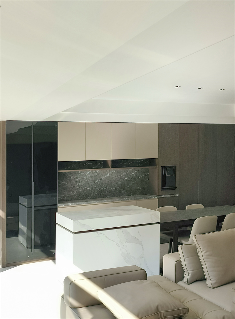 設(shè)計理念:現(xiàn)代極簡裝修風(fēng)格體現(xiàn)了簡潔又不簡單的特點,這一點跟現(xiàn)代簡約相似,極簡風(fēng)格去除復(fù)雜的裝飾,改用線條和色塊來做區(qū)分或者點綴,通過最簡單的形式、最理性的設(shè)計手段,追求一種純粹、無雜質(zhì)的藝術(shù)效果。