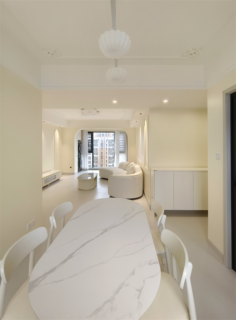 設(shè)計理念:奶油系風(fēng)格,既有著現(xiàn)代極簡的空間感,也有著法式浪漫雅致空靈的情調(diào),奶油色是一種淡淡的奶咖色,在米白色與奶咖色之間的色系,奶油色是一個低飽和度的配色風(fēng)格。在此基礎(chǔ)上,再搭配米色、暖灰色、原木色等其他飽和度比較低的色彩,最后再用一些帶有重色的家具、木料或墨綠的植物,起到對比和突出的視覺效果。