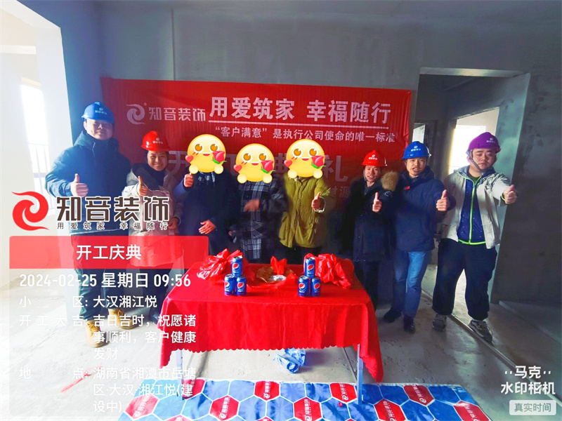 經(jīng)過(guò)原屋儉收,電梯公共過(guò)道保護(hù),鏟除墻皮,全房放線定位后知音裝飾為每戶業(yè)主舉行隆重的開(kāi)工儀式以表慶賀