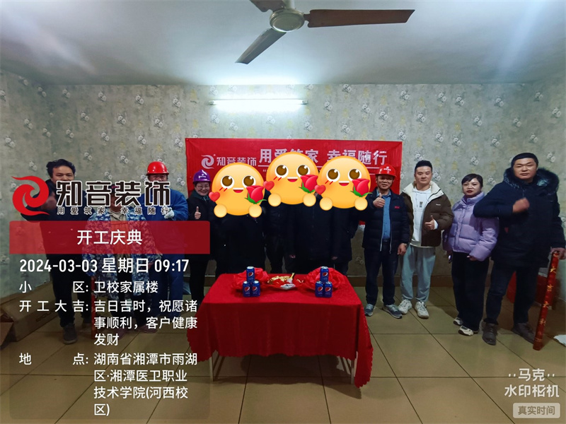 經(jīng)過原屋儉收,電梯公共過道保護,鏟除墻皮,全房放線定位后知音裝飾為每戶業(yè)主舉行隆重的開工儀式以表慶賀