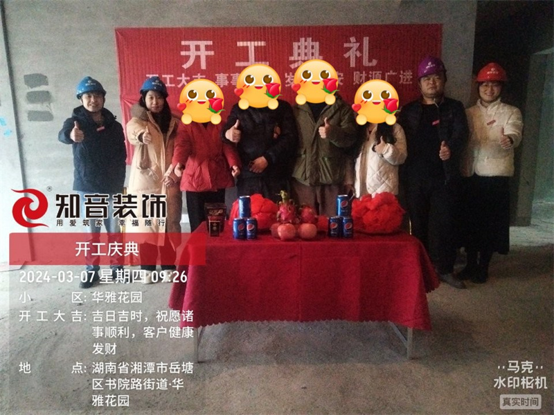 經(jīng)過原屋儉收,電梯公共過道保護,鏟除墻皮,全房放線定位后知音裝飾為每戶業(yè)主舉行隆重的開工儀式以表慶賀